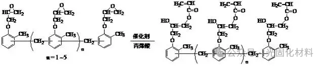 紫外光固化樹脂(UV樹脂)![]() 紫外光固化樹脂是光固化材料(UV涂料、UV油墨、UV膠粘劑等)的主要成分,又稱光敏樹脂(UV樹脂)。它是一種低分子量感光樹脂,具有可以進行光固化反應的基團,如各類不飽和雙鍵或環氧基等,受光照射后能迅速固化。 紫外光固化樹脂可分為:自由基光固化體系、陽離子光固化體系。 自由基光固化體系用的低聚物都是具有C=C不飽和雙鍵的樹脂,如丙烯酰氧基、甲基丙烯酰氧基、乙烯基、烯丙基等。按照自由基聚合反應速率快慢排序:丙烯酰氧基>甲基丙烯酰氧基>乙烯基>烯丙基。因此,自由基光固化用的低聚物主要是各類丙烯酸樹脂,如環氧丙烯酸樹脂、聚氨酯丙烯酸樹脂、聚酯丙烯酸酯、聚醚丙烯酸酯、丙烯酸酯化的丙烯酸樹脂或乙烯基樹脂等。其中應用最多的是環氧丙烯酸酯、聚氨酯丙烯酸酯。 陽離子光固化體系用的低聚物,具有環氧基團或乙烯基醚基團(CH2=CH-O-),如環氧樹脂、乙烯基醚樹脂。 幾種主要的光固化樹脂的結構特征和應用: ![]() (1)環氧丙烯酸酯(簡稱EA) 雙酚 A 環氧丙烯酸酯的合成反應式見下: ![]() 雙酚 A 型環氧丙烯酸酯分子結構中含芳環和側位羥基,對提高附著力有利,脂肪族環氧丙烯酸酯的附著力就很差;芳環結構還賦予樹脂較高的剛性、拉伸強度及熱穩定性。 優點:光固化反應速率很快,固化后硬度和拉伸強度大,膜層光澤度高,耐化學品腐蝕性能優異。 應用:缺點是脆性大,耐UV和黃變性差。酚醛環氧丙烯酸酯為多官能團丙烯酸酯,反應活性高,剛性大,耐熱性更佳。一般用于光固化阻焊油墨。環氧化油丙烯酸酯和改性環氧丙烯酸酯一般和其它樹脂復配使用。 解決方法:加入大量活性稀釋劑調低粘度,并且盡量減少高官能度 “硬性” 活性稀釋劑的用量。 酚醛環氧丙烯酸酯反應的合成反應式如下: ![]() 酚醛環氧樹脂為多官能環氧基樹脂,且苯環密度較高,決定了它剛性、高交聯度的特點。 形成的酚醛環氧丙烯酸酯反應活性更高,交聯密度大,交聯網絡中芳環稠密,耐熱性能極佳,常常是電子工業阻焊材料的首選原材料,PCB 油墨應用廣泛。 3. 改性環氧丙烯酸酯 根據需要對環氧丙烯酸酯進行某種化學修飾,可以突出樹脂某方面的性能優勢。 ①胺改性環氧丙烯酸酯 眾所周知,有機胺是環氧樹脂的熱交聯固化劑,伯胺和仲胺可以直接打開環氧環,成為交聯環氧聚合物結構中的一部分,叔胺則只是催化開環,本身沒有鍵連到交聯聚合分子上,反應活性低于前兩種胺。 在加入丙烯酸之前,先將環氧樹脂與少量脂肪族伯胺或仲胺加熱反應,環氧分子之間部分縮合,樹脂分子量增加,但仍留有大部分環氧基,再與丙烯酸酯化,即得所謂胺改性環氧丙烯酸酯。 主要目的是為了在反應過程中適度增加分子量,以利于提高樹脂的反應活性,減小固化收縮率,改善附著力等性能。 胺改性的另一重含義為在樹脂上引入季銨基團,帶電核基團可使樹脂對灰塵微粒的潤濕性增強,有利于獲得高光澤度固化表面,減少表面固化缺陷;同時對放電處理過的底材附著力改善。 其合成方法為:先將環氧樹脂與欠量的丙烯酸正常反應,待丙烯酸轉化完全,尚有少量環氧基殘余,加入計算量的叔胺和酸,將殘余環氧基轉變為季銨基團。 ②磷酸(酯)改性環氧丙烯酸酯 磷酸(酯)改性的環氧丙烯酸酯主要是為了獲得對金屬底材良好的附著力,磷酸基對金屬底材產生輕微腐蝕,并對金屬表面形成絡合結構,附著力得以增強。 比較簡單的合成方法是先將環氧樹脂直接與欠量丙烯酸反應,殘余環氧再與磷酸作用,形成磷酸酯,并可與另一分子的環氧基團反應,起到擴鏈作用,形成鏈中具有膦酸酯基團的環氧丙烯酸酯,當然還是以混合酯化產物為主。 下面反應式為膦酸酯改性環氧丙烯酸酯的代表性結構。 ![]() 另外,也可以用三氯氧磷(POCl3)直接與環氧丙烯酸樹脂的側位羥基反應,而后水解,形成接枝磷酸基的改性樹脂,此法會產生鹽酸。 ③多元酸酐改性環氧丙烯酸酯 用多元羧酸酐對環氧丙烯酸酯改性包括兩種情況,一種是用酸酐對環氧樹脂擴鏈,增大分子量,再行丙烯酸酯化,酸酐進入預聚物分子主鏈;其二是用多元酸酐與環氧丙烯酸酯的側羥基作用,在樹脂上引入羧基,即羧基化,酸酐接枝到預聚物分子鏈上。 常用多元羧酸酐包括馬來酐、丁二酸酐、四氫苯酐、六氫苯酐、甲基納迪克酸酐、偏苯三酸酐等。 酸酐擴鏈主要為了提高低聚物的光反應活性,降低固化收縮率,也有助于提高固化產品的熱變形溫度,長鏈酸酐(例如己二酸)改性的樹脂在柔性方面也將得到改善。 ④長鏈脂肪酸改性環氧丙烯酸酯 利用蓖麻酸、油酸、亞油酸等天然長鏈脂肪酸對環氧基反應,引入柔性長鏈,改善柔韌性,同時樹脂對顏、填料的潤濕性也可能得以改善。 ⑤鹵代環氧丙烯酸酯 溴化環氧丙烯酸酯可用溴化雙酚 A 環氧樹脂和丙烯酸反應得到,它燃燒時能夠自熄,可用作阻燃光固化材料。氟代環氧丙烯酸酯具有較高的折光指數(1.408 ~ 1.565),可用于制造光固化光學器件。 4. 環氧化油丙烯酸酯 大豆油、亞麻子油等很多干性油含大量 C=C 不飽和雙鍵,在過氧化物作用下轉變為環氧基,本身可添加到陽離子固化配方中,降低粘度,增加柔性。也可以在鋅粉和水合硫化鋅催化下,將環氧油與丙烯酸反應(如下式),開環成氧化油丙烯酸酯,產物有良好的柔性和流平性,尤其突出的是對顏料有很好的潤濕分散能力。 樹脂光反應活性不